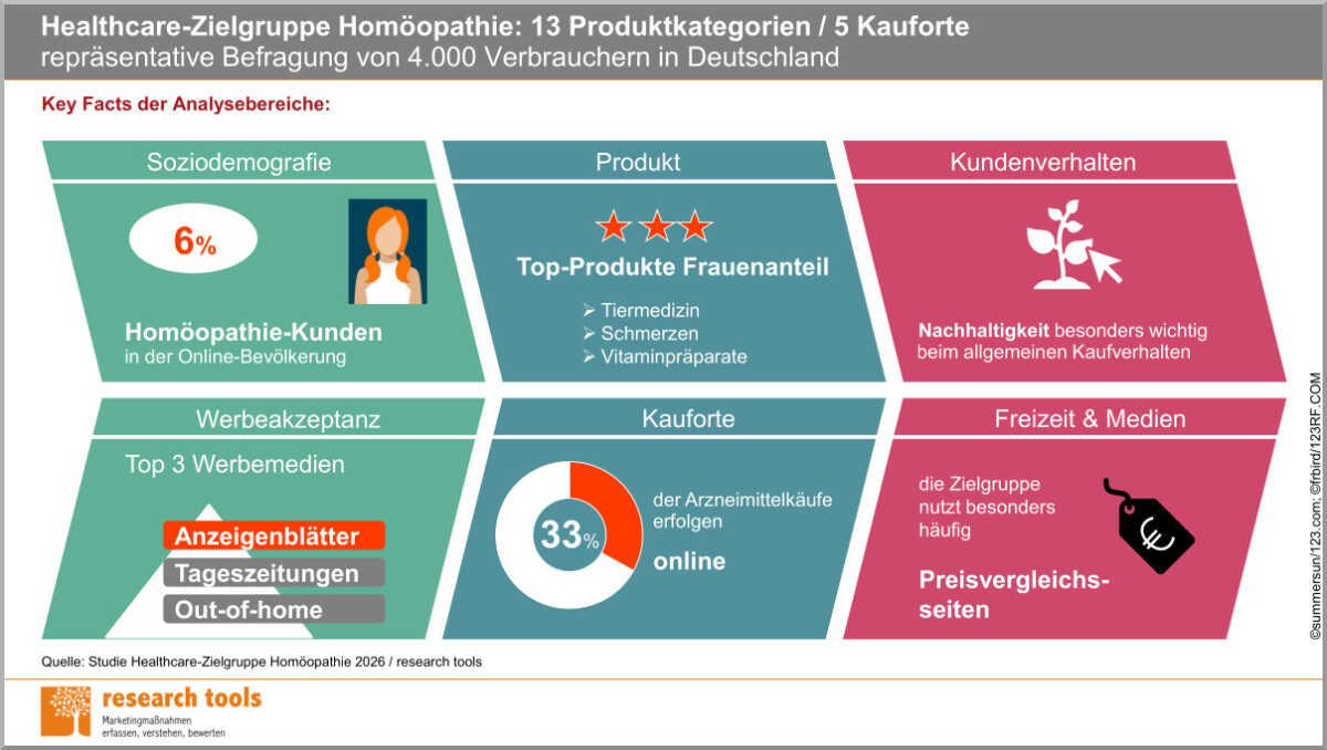 - 4.000 Online-Interviews, davon sechs Prozent aus der Zielgruppe Homöopathie-Kunden
