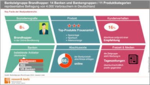 Auf Basis von 4.000 online-repräsentativen Interviews, davon acht Prozent in der betrachteten Zielgruppe Brandhopper, gibt die Studie Einblick in das Bankverhalten der Zielgruppe im Vergleich zu Bankkunden insgesamt. Analyseaspekte sind Soziodemografie, Kundenverhalten, Produkt- und Markenwahl, Abschlussort sowie Freizeit- und Medienverhalten.